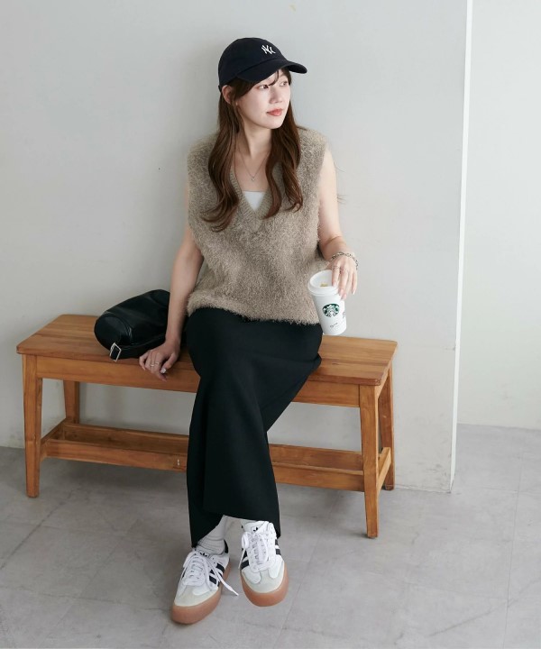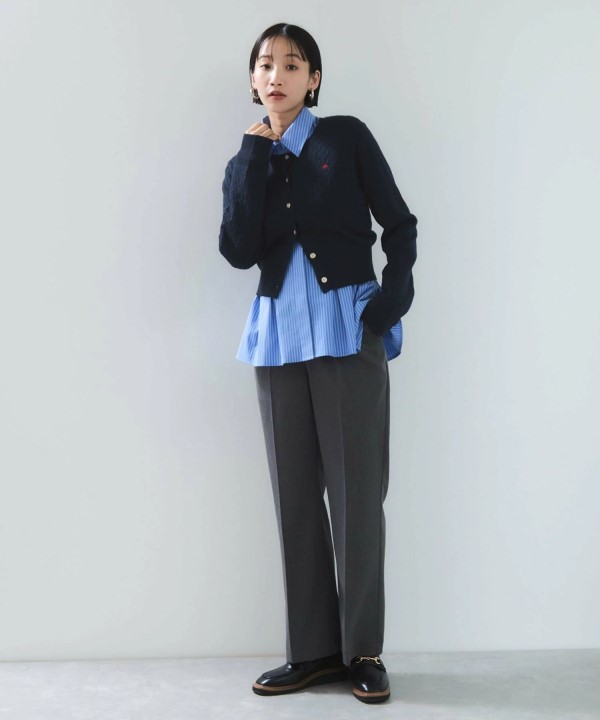 ストレートスカートやセミワイドパンツと合わせて、スッキリとした着こなしを。