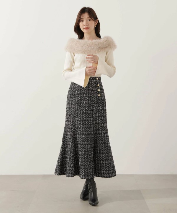 スカートの金ボタン×ツイード素材が秋っぽさも演出してくれます。