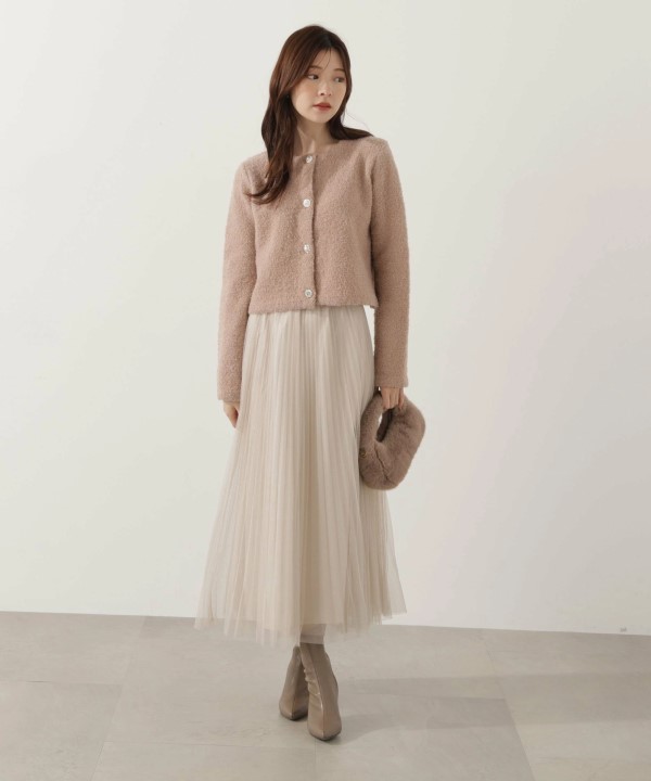 きれいめ派におすすめなのは、骨格ウェーブにとってバランスがいいショート丈のカーディガン。