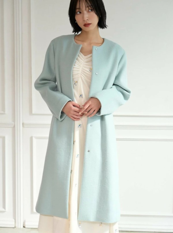 お顔立ちが甘い曲線タイプの方がウールコートを選ぶなら、ラウンドネック&明るい色を選びシンプルだけど柔らかい印象にもっていくとベストです♪