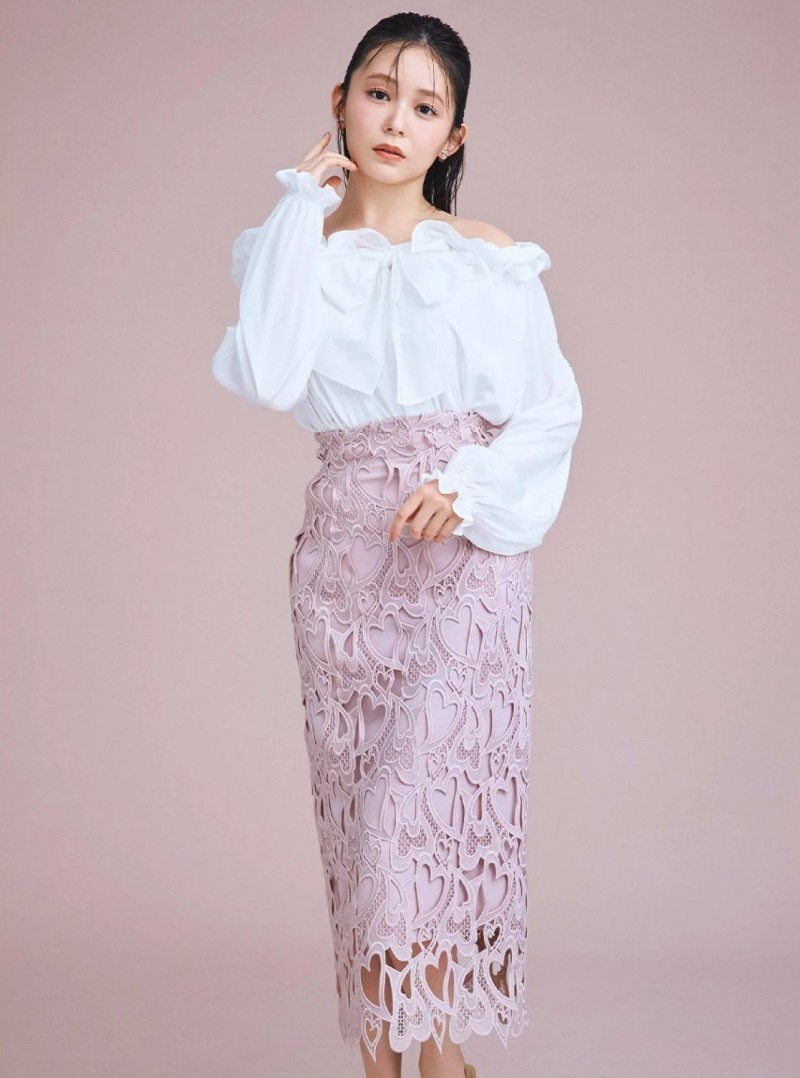 インパクトのあるビッグリボンがポイントのブラウスが、華やかなお顔立ちを引き立ててくれます。